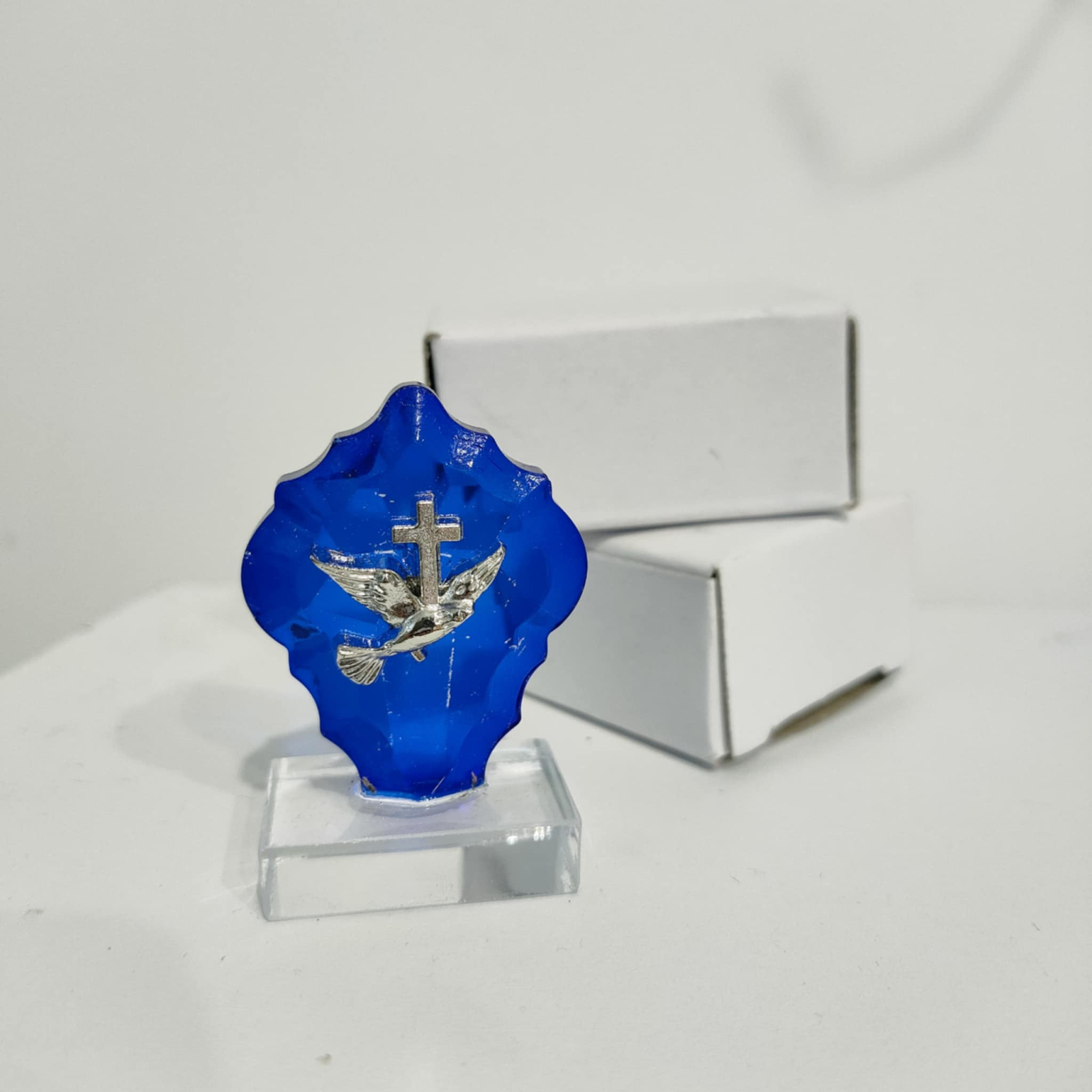 Iconitele vin ambalate intr-o cutie alba, pe care se lipeste o eticheta cu datele evenimentului (numele bebelusului / mirilor si data evenimentului), accesorizate cu funda (culoarea este la alegere - roz pal, verde, albastru, crem, mov si rosu).